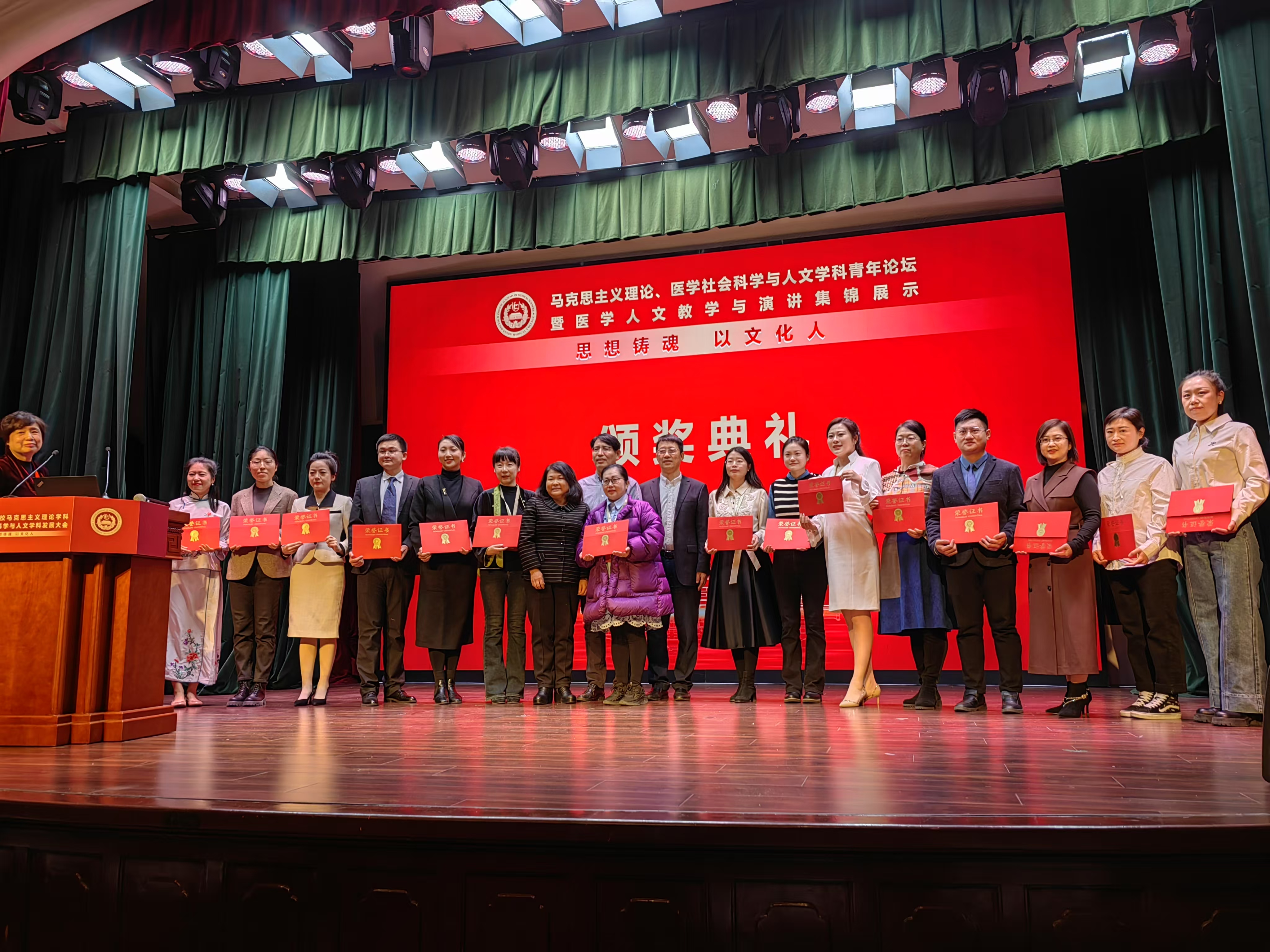 12月28日上午,大会进行马克思主义理论学科和医学社会科学与人文学科青年论坛暨医学人文教学与演讲集锦展示,我院王锦帆教授主持青年论坛。邵建文老师参加医学人文教学与演讲集锦展示颁奖典礼,并做《人文与医学融通的医患沟通技能—医方示善》讲课教学展演。