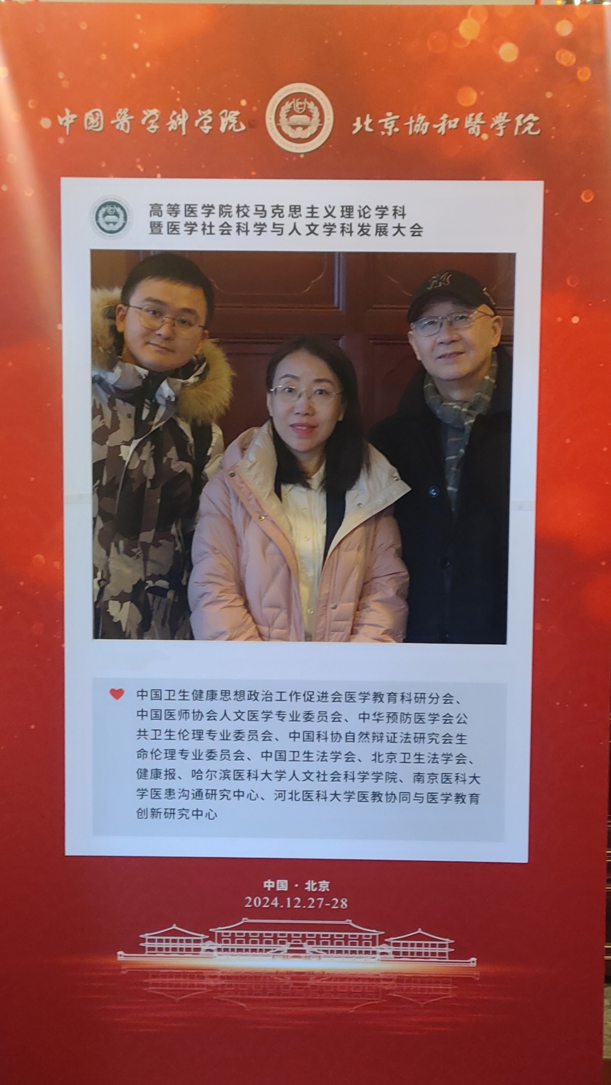 2024年12月27日至28日,高等医学院校马克思主义理论学科暨医学社会科学与人文学科发展大会在北京举办。本次大会由北京协和医学院马克思主义学院、人文和社会科学学院、中国卫生健康思想政治工作促进会医学教育科研分会、中国医师协会人文医学专委会、中华预防医学会公共卫生伦理专委会、中国科协自然辩证法研究会生命伦理专委会、中国卫生法学会、北京卫生法学会、健康报、哈尔滨医科大学人文社会科学学院、南京医科大学医患沟通研究中心、河北医科大学医教协同与医学教育创新研究中心联合承办。300余位医科院校马克思主义理论、医学卫生健康领域相关专家、学者及北京协和医学院领导、职能部门人员和所院领导及相关科研人员参加会议。受大会邀请,我院巩茹敏院长、王锦帆教授和邵建文老师参加本次大会。
